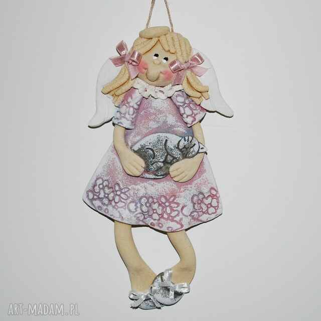 Kolorowy aniołek - rękodzieło - każdy inny. Wykonałam go z myślą, że sprawdzi się jako wisząca, dekoracja pokoju dziecięcego lub będzie doskonałym prezentem dla dziecka z okazji: urodzi, chrzcin, komunii świętej lub prezentem świątecznym. . Do wykonania anioła wykorzystałam masę solną, samodzielnie ją kulając. Następnie anioł trafił do piekarnika na ok 8-10 godzin. Malowanie i ozdabianie to także ręczna robota. Każdy posiada zawieszkę w postaci dratwy lub sznurka konopnego i z tyłu zabezpieczony jest lakierem akrylowym. Do wysyłki pakuję anioła w celofanowy woreczek i przewiązuję rafią naturalną.