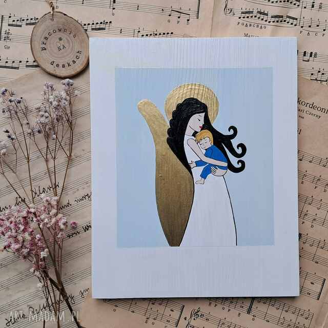 Obrazek malowany na drewnie farbami akrylowymi, do powieszenia na ścianie, polecam na prezent -pamiątkę Chrzest Święty dla chlopca, będzie to prezent na całe życie.