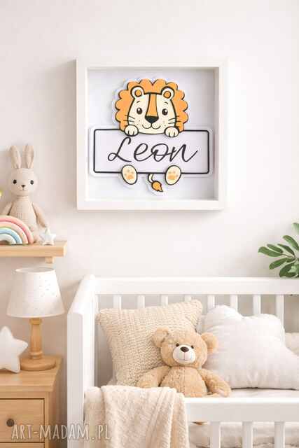 🦁 Ramka z imieniem dziecka - Lew Personalizowana dekoracja do pokoju dziecka
