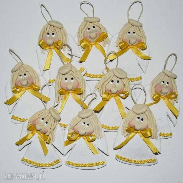 Aniołki - rękodzieło - każdy inny. Wykonałam je z myślą, że sprawdzą się jako dekoracja świąteczna, np.: stołu, choinki, stroika lub będą doskonałym prezencikiem dla gości świątecznych z okazji: ślubu, chrztu, komunii św., urodzin, jubileuszy, itp.