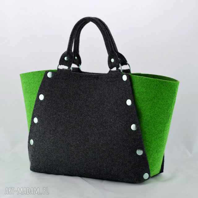 ręcznie robione filcowa torebka grafit i zielony z napami