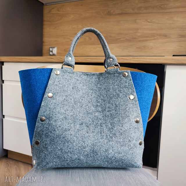 Torebka została wykonana z wytrzymałego, mocnego, polskiego filcu. Prosta, minimalistyczna forma. Rączki torebki zostały wzmocnione poprzez podszycie ich taśmą satynową. Torebka wygląda naprawdę ładnie!