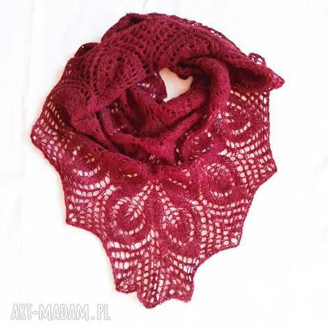 szybka wysyłkaChusta ażurowa cieniowana. Czerwone autorskie chusta na drutach. Nieduża cieniowana wykonana w całości ręcznie na drutach z miłej w dotyku włóczki akrylowej, Wymiary: 120 cm x 60 cm115,00 zł