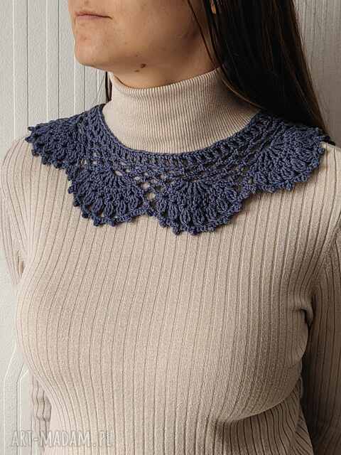 Stylowy koronkowy kołnierzyk wykonany ręcznie z włóczki na szydełku.