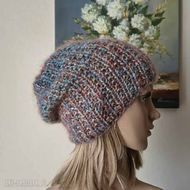 ręcznie na drutach - zimowy spacer miła, puchata, ciepła czapka z merino, jedwabiem