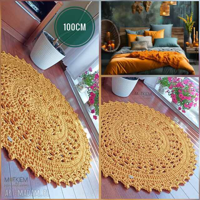 Dywan okrągły szydełkowy ze sznurka 90cm. Boho - dywan dywany Wykonany metodą szydełkowania z polskiego sznurka bawełnianego 5mm, Ozdobi salon350,00 zł
