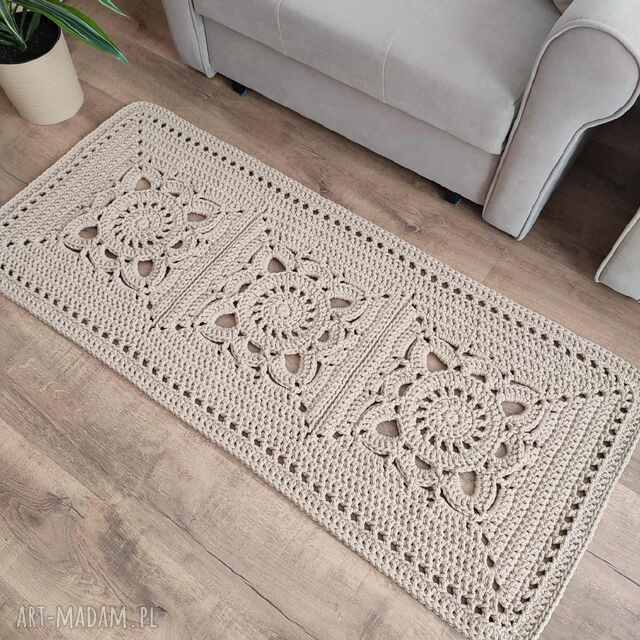 dywan ze sznurka bawełnianego szydełkowy prostokątny 60x143 cm