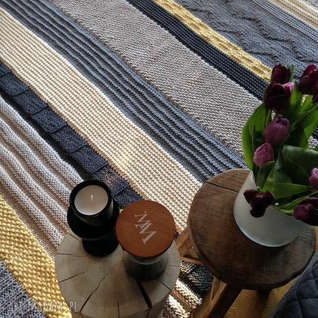 Piękny, naturalny dywan wykonany ręcznie, na drutach z grubego sznurka ( 0,5 cm) bawełnianego od polskiego producenta w przepięknym miksie szarości i beżów.