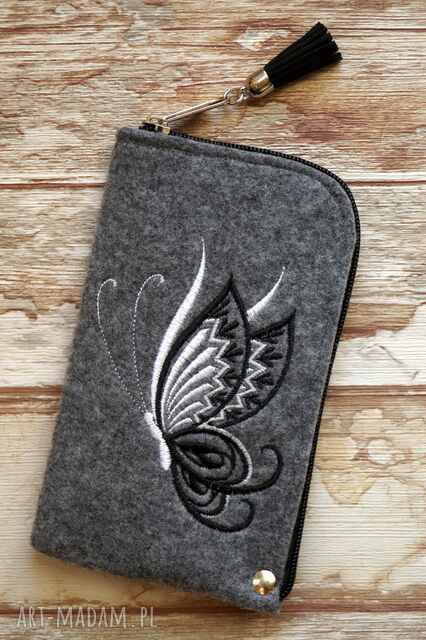Przedmiotem sprzedaży jest widoczne na zdjęciu etui na telefon, wykonane ze stabilizowanego i impregnowanego filcu w kolorze szarym, wewnątrz czarno-biała bawełna we wzór marokański. Zamykane na czarny zamek błyskawiczny.
