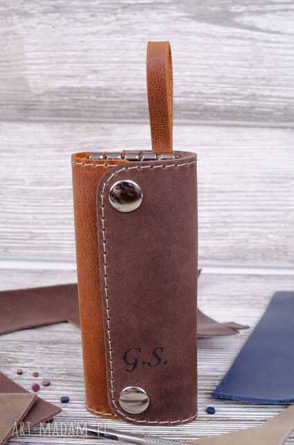 Skórzane etui na klucze z grawerem, kolor rudy brąz-. Bardzo praktyczne, zmieścisz je w kieszeni marynarki, spodniach lub kurtki, 4 haczyki na klucze, Kolor89,00 zł