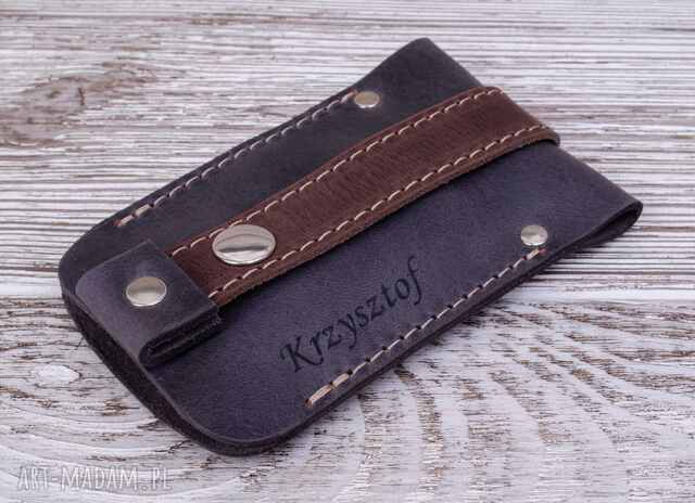 skórzane etui na klucze z grawerem, kolor szary
