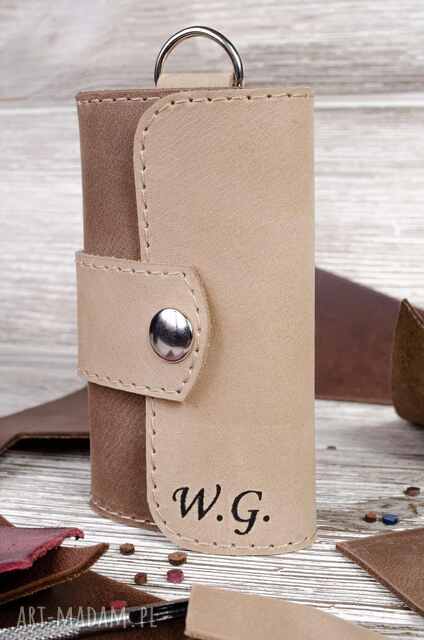 skórzane etui na klucze z grawerem, kolor beżowy
