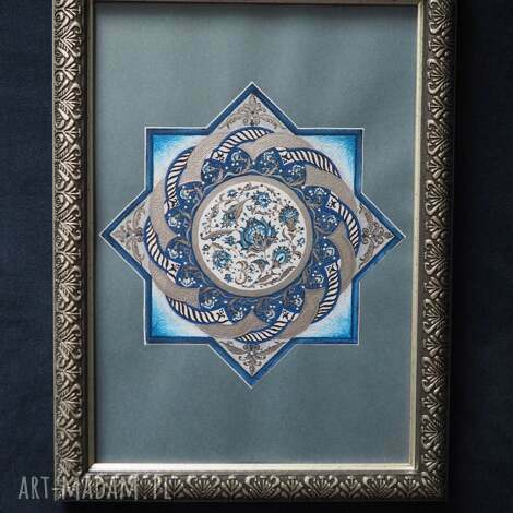 szybka wysyłkaElegancki obraz w stylu wschodnim mandala zielona. Ręcznie malowana mandala wzorowana na dziełach klasycznej sztuki wschodniej, Obraz oprawiony jest w złotą ramkę z ciemnozielonym passe230,00 zł