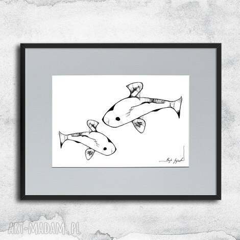 szybka wysyłkaGrafika z ramą - ryby - nr 10. Grafika na ścianę obrazy i grafiki. Unikalna kreska wygląda bardzo efektownie, zaś czarno, Format z oprawą 31x22cm, Praca jest oprawiona, Praca gotowa do powieszenia na ścianie165,00 zł