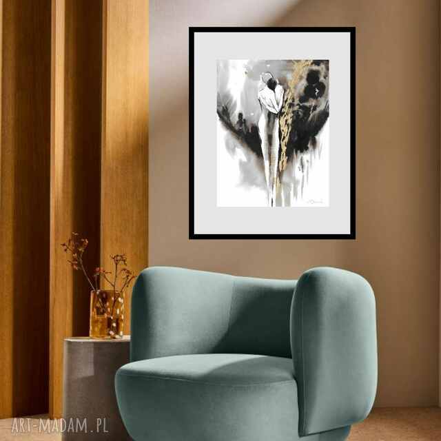 grafika z cyklu "ona i on" ręcznie malowana i złocona o wymiarach 30cm x