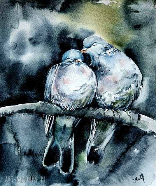 Grafika przedstawiające dwa zakochane gołębie, A4, 21x29 cm.