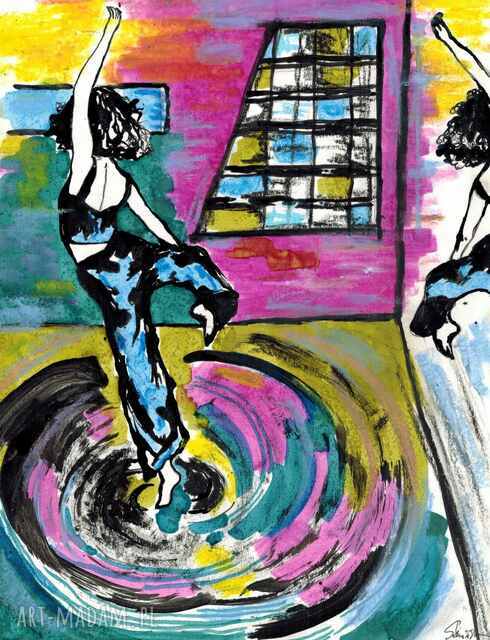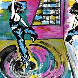 Żywotna, ekspresyjna, roześmiana, głodna życia, pełna pasji i entuzjazmu - totalnie zatracona w wirze tańca - taka właśnie jest bohaterka tej grafiki. Będzie doskonałym akcentem w każdym wnętrzu, któremu chcesz dodać więcej energii i soczystych kolorów.