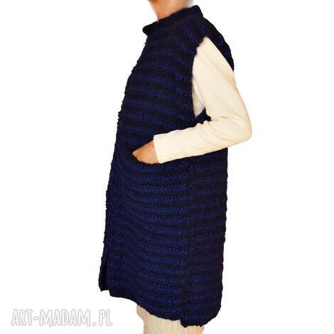 Ręcznie na drutach - długa ciepła kamizela w styluwyprzedano