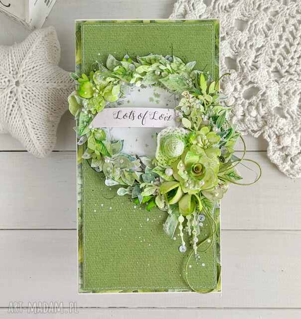 Każda kartka posiada unikalną kompozycję, wykonaną z delikatnej koronki oraz eleganckich kwiatków. Nie ma dwóch identycznych kartek — każda jest jedyna w swoim rodzaju.