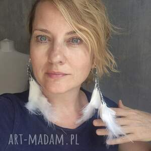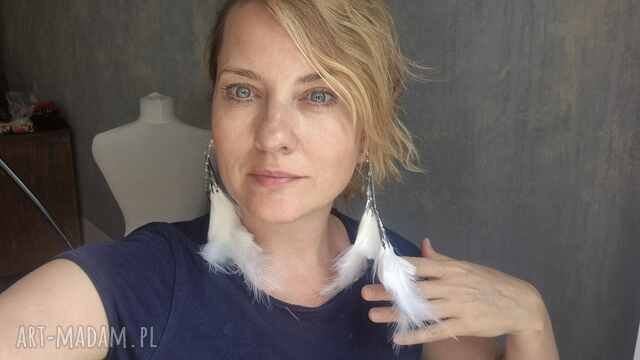 handmade klipsy długie białe pióra mogą być ślubne bardzo stylowe zwracają uwagę duże