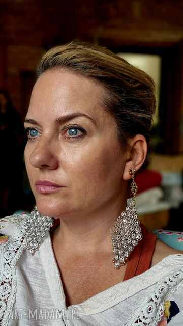 Klipsy długie długie lekkie filigrane w kolorze srebrnym i złotym w indyjskim orientalnym stylu pole