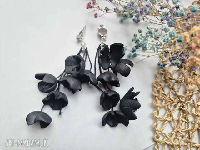 ręcznie robione klipsy czarne kwiaty lekkie duze box wir