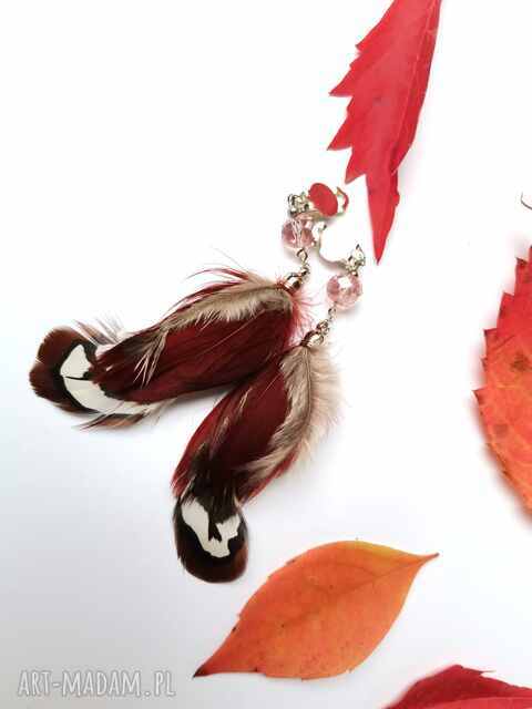 handmade kolczyki pióra jesienne lekkie etno boho folk klipsy