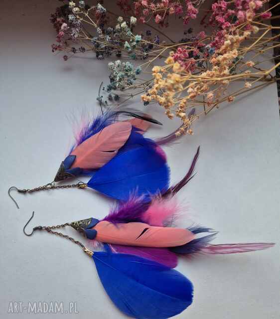 Ruda Klara - klipsy pióra gęste etno polecam box x1