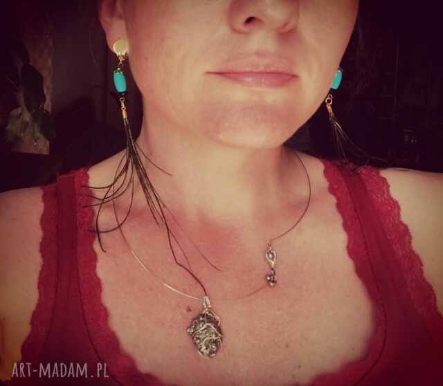 ręcznie robione klipsy niebieskie koraliki i pawie pióra, poezja:nawet ciasteczkowy