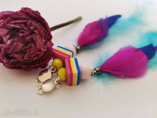 Klipsy ja kocham tęczę to z szarością się męczę- pióra długie etno boho
