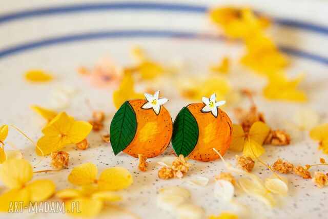 Ręcznie wykonane klipsy w kształcie soczystych pomarańczy to wyjątkowy dodatek dla miłośniczek oryginalnej biżuterii. Każdy element został starannie wycięty, pomalowany i zabezpieczony, dzięki czemu kolory są intensywne, a detale - takie jak zielone listki i delikatne białe kwiaty - nadają całości świeżości i lekkości.