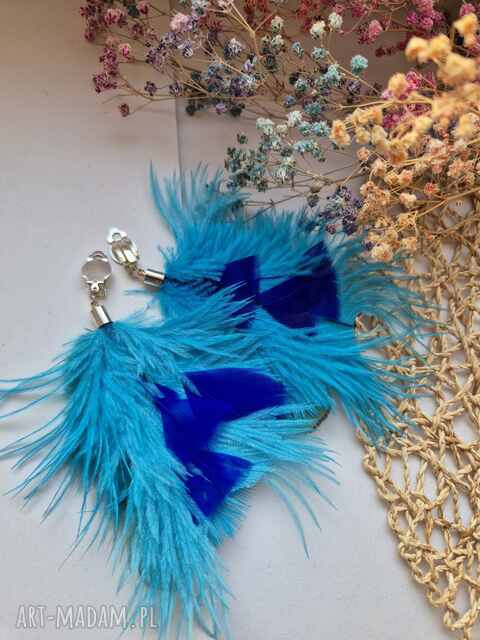 ręcznie wykonane klipsy turkus pióra eleganckie lekkie boho