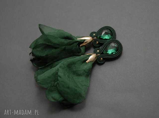 szybka wysyłkaZielono-fuksjowe klipsy sutasz z kwiatkiem. Ozdobione fasetowanym kaboszonem i kwiatkami z materiału, 4 cm69,00 zł