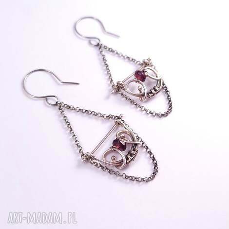 darmowa dostawaszybka wysyłkaCaro - srebrne kolczyki z granatem fasetowany granat srebro. Autorskie artystyczne sztyfty. te wyjątkowe kolczyki zostały wykonane ręcznie w technice wire wrapping ze srebra próby 925, Materiał: srebro 925, 5 cm320,00 zł