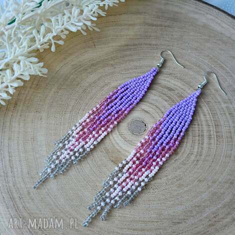 Kolczyki kolorowe chwosty bardzo stylowe zwracają uwagę duże jedyny egzemplarz. Fioletowe slub etno75,00 zł