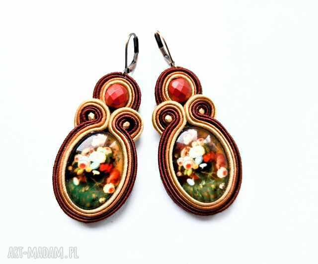 Kolczyki sutaszowe ręcznie haftowane. Długość 5 cm