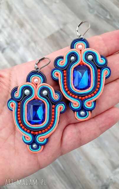 Kolczyki sutasz amaranto. Lekkie kolczyki wykonane pracochłonną techniką haftu sutasz, Kolorystyka, czarny, czerwony95,00 zł