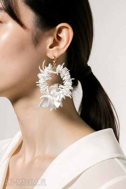 białe kolczyki ślubne - ręcznie robione kwiaty delikatne, ręcznie wykonane kolczyki