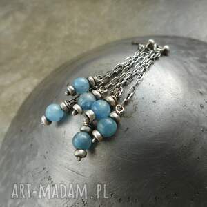 Wyjątkowe, zwiewne kolczyki z kamieni naturalnych i szlachetnego srebra; lekkie, nie obciążające ucha, z pięknymi błękitnymi akwamarynami. Do kompletu polecam bransoletkę dostępną w mojej galerii.