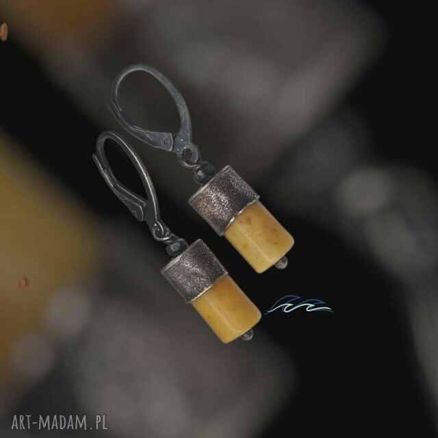 Srebrne gronka z bursztynem. Kolczyki długie i lekkie jednocześnie, Zapięcie - bigiel otwarty, postarzane, przecierane230,00 zł
