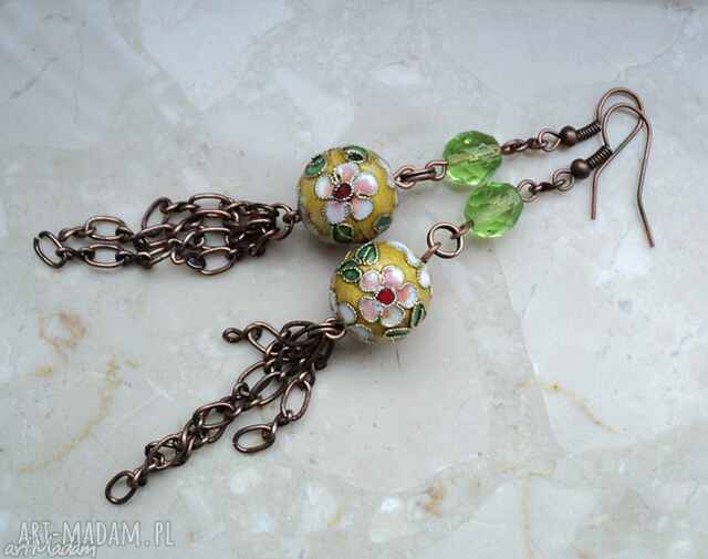 Antique. Kolczyki wykonane z ceramicznych oraz mosiężnych kul, Długość ok 5 cm38,00 zł