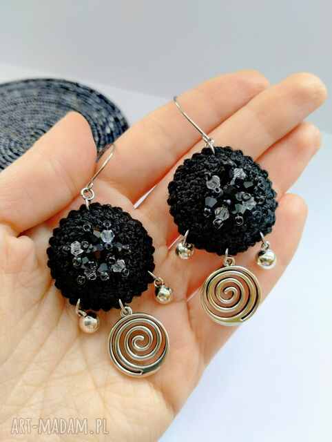 Kolczyki szydełkowe czarno-białe. Miękkie, co nadaje im nowoczesnej estetyki, Ten rytmiczny układ wprowadza lekko bajkowego, 3 cm65,00 zł
