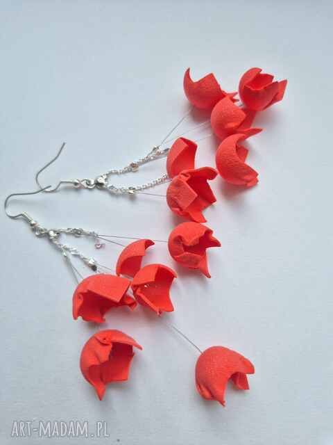 kolczyki czerwone eleganckie kwiaty na łańcuszku niesamowicie zwracają uwagę