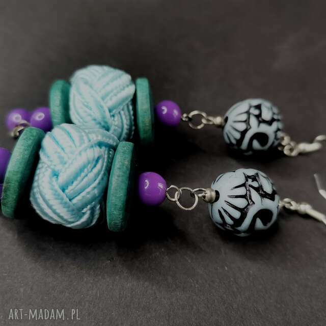 Kolczyki długie niebiesko fioletowe polecam box m1
