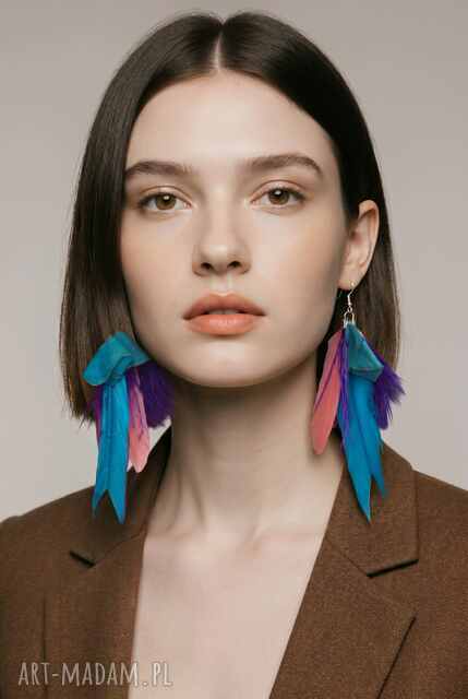 ręcznie robione kolczyki - długie pióra Wyjątkowe, ręcznie tworzone kolczyki w formie długich piór