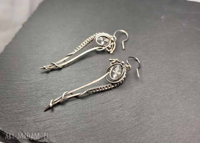 długie srebrne kolczyki z kryształem lekkie, eleganckie, ręcznie robiona