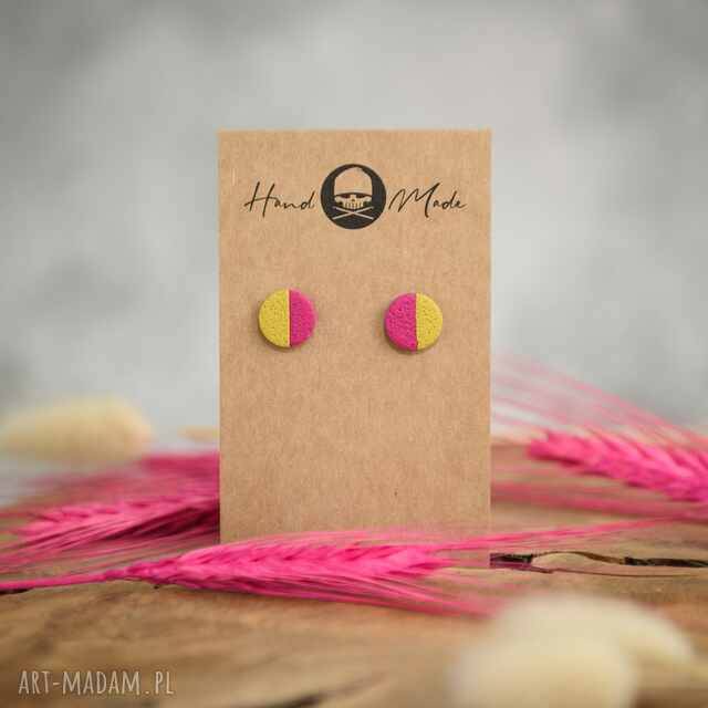 kolczyki dots half - różowo - zielone