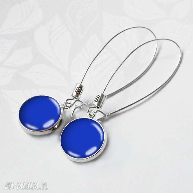 Oryginalne, ręcznie robione kolczyki ze szklanym wypukłym oczkiem, w oprawie w kolorze srebra. Bigle duże, posrebrzane, zapinane.