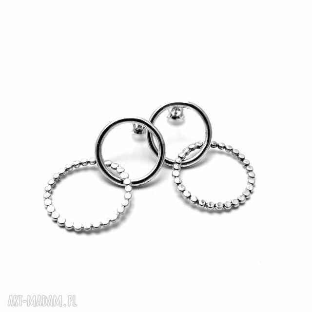 Nieregularne srebrne kolczyki kółka sztyfty. Kolczyki koła o nieregularnym kształcie, bardzo stylowe i niebanalne, Charakterystyka, bigle380,00 zł