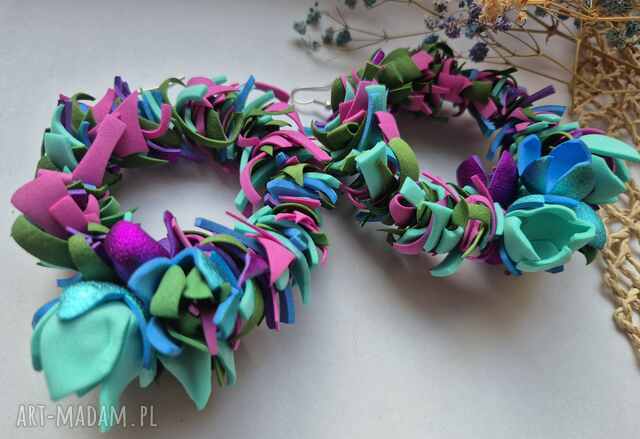 Kolczyki koła kwiatowe lekkie niezwykle bujne robiące wrażenie z serii tej biżuterii którą założysz i wszyscy cię widzą i zazdroszczą polecam rękodzieło
